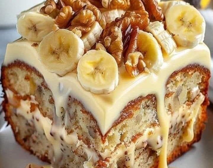 This banana walnut cake with creamy glaze is a true crowd-pleaser. The rich banana flavor, the crunch of walnuts, and the smooth glaze make it a perfect dessert for any occasion. Whether you’re baking for a party, a family gathering, or just for yourself, this recipe will never disappoint!
