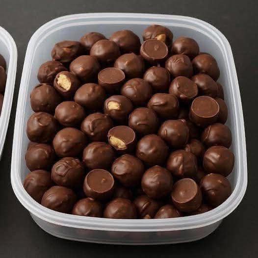- Dip the peanut butter balls in melted chocolate and use a spoon to pour some chocolate over the top then lift and allow excess chocolate to run off.
